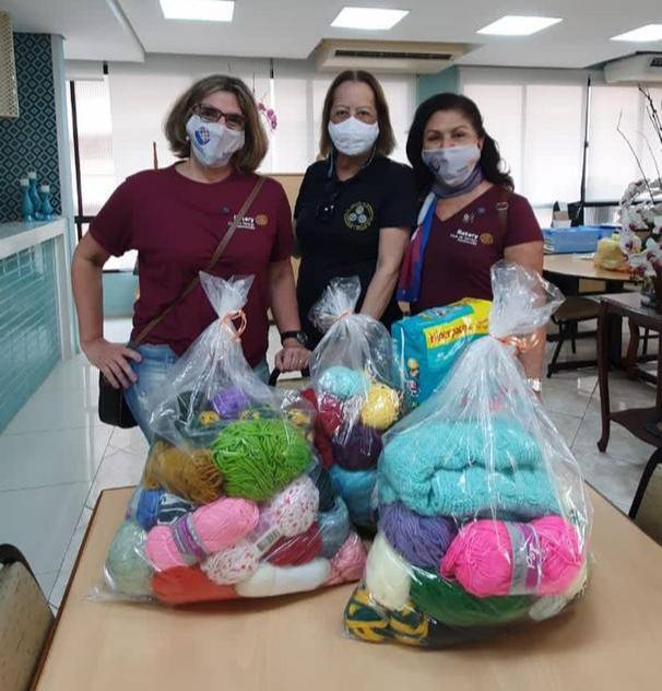 O Rotary Club de Santos Aparecida arrecadou novelos de lã e fraldas descartáveis para ajudar na confeccão de enxovais feitos pela "ASFAR de Santos" que doa para as mãezinhas que precisam de ajuda neste momento.