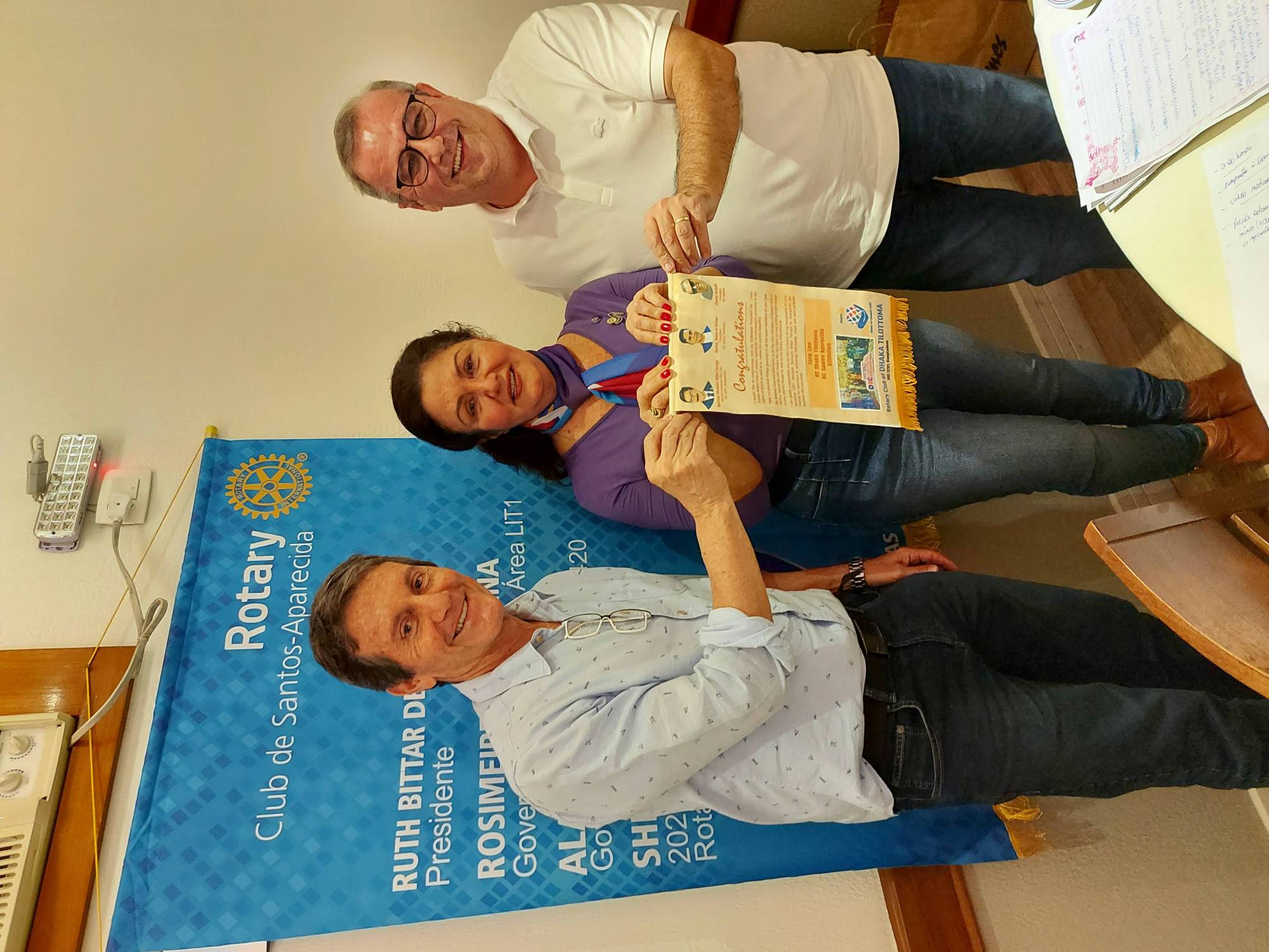 7° Reunião Ordinária do Rotary Club de Santos Aparecida retornando de forma presencial com as devidas medidas de prevenção ao Covid 19. Na ocasião o Clube tendo como portador o novo associado Edmir Kabbach recebeu uma carta do Rotary Club of Dhaka Tilottoma - Distrito 3281 de Bangladesh nos convidando a formalizarmos parcerias para projetos de subsidios globais. E nos presenteou com uma Flâmula personalizada com a foto do nosso sócio Presidente Fundador César Antelo.