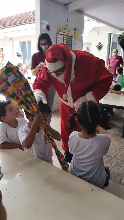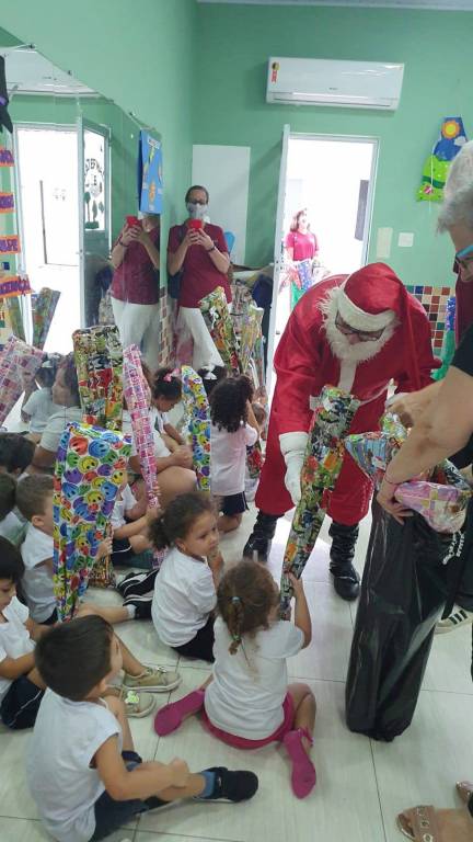 Em uma ação repleta de Felicidade e Emoções, o Rotary Club de Santos Aparecida realizou juntamente com o seu Papai Noel, a entrega de presentes para as crianças da Creche Divina Providencia.