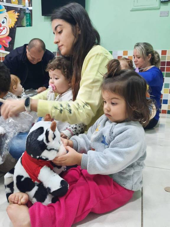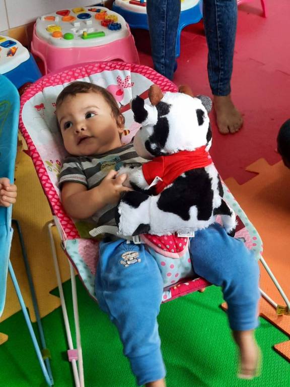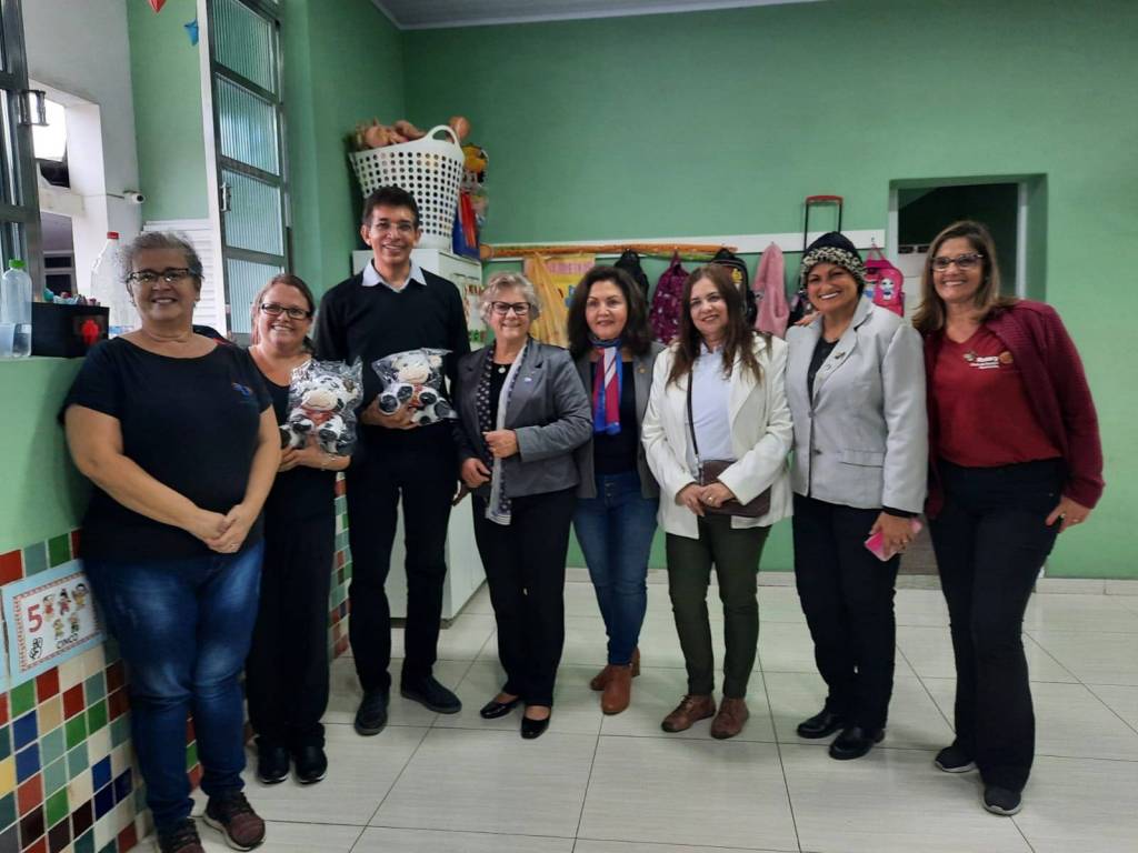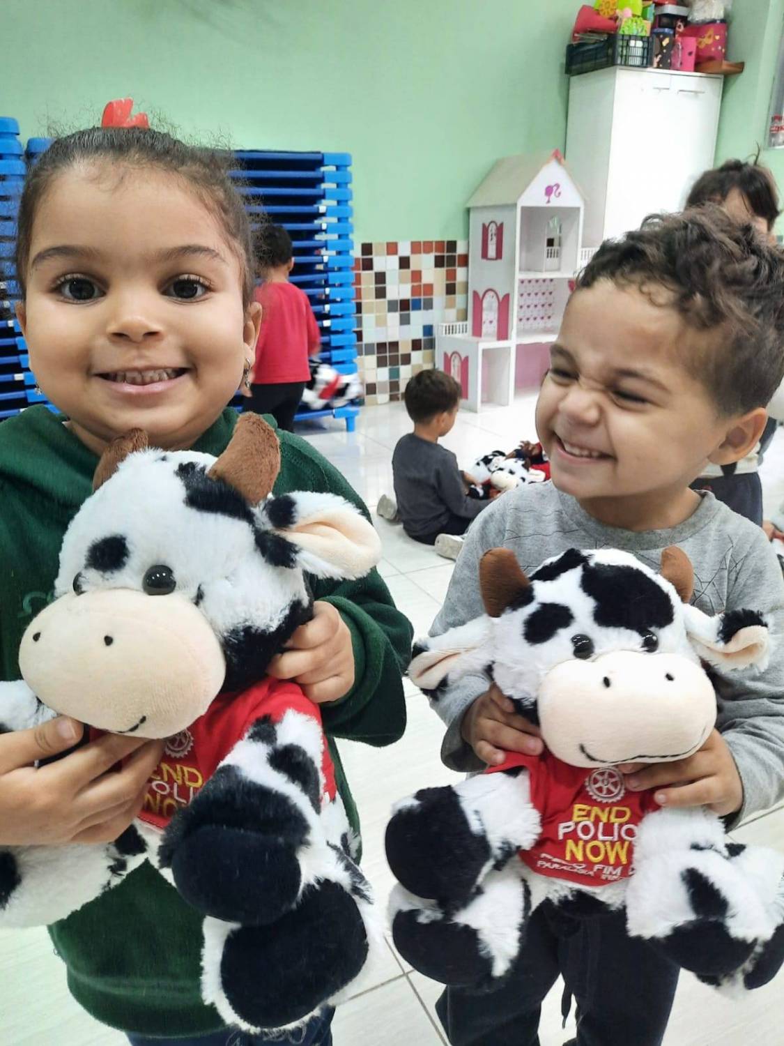 E neste grande dia a Governadora Alaide, do Distrito 4420, entregou 100 Vaquinhas da Campanha para o fim da Polio às crianças da Creche Divina Providência em Santos.