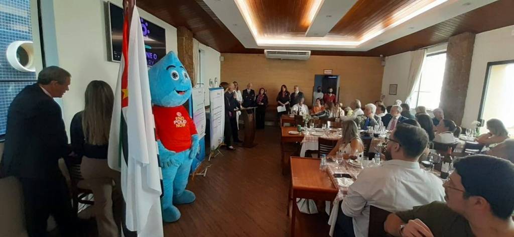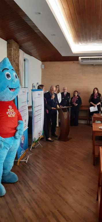 A Presidente eleita Maria Cristina Guiberto Souza ressaltou em seu discurso a importância do Rotary no combate a Pólio e, com muita alegria chamou à frente o mascote do Rotary Clube de Santos Aparecida, o Zé Rotinha, que estava presente nesta grande festiva.