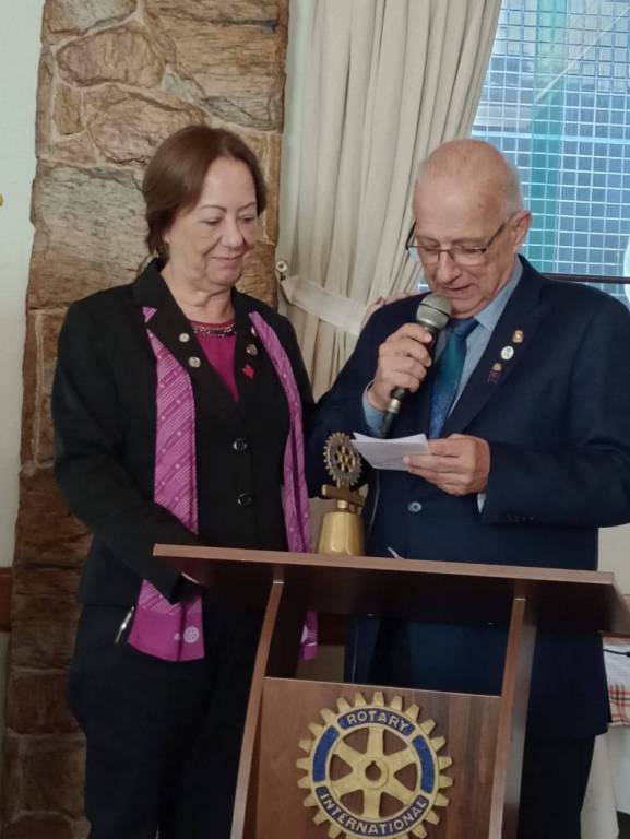 A então presidente, Ruth Bittar de Melo transmitiu seu cargo para a nova presidente, Maria Cristina Guiberto Souza, que assume a nova gestão sob o lema rotário “Imagine o Rotary”, escolhido pela presidente do Rotary Internacional, Jennifer Jones.