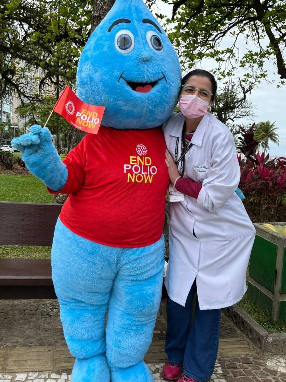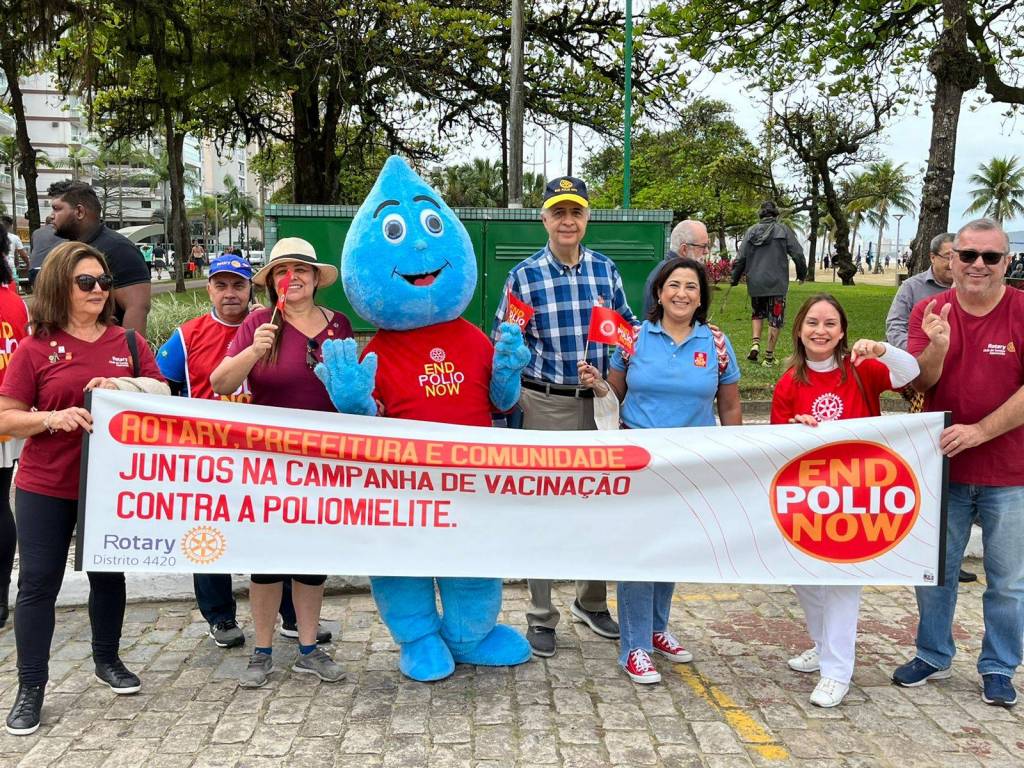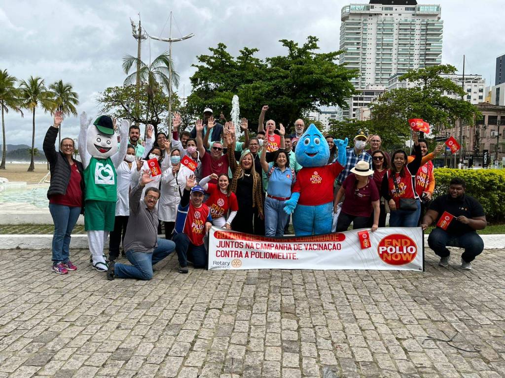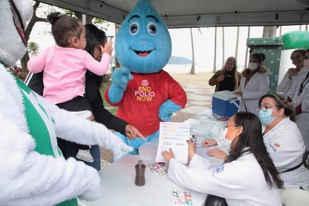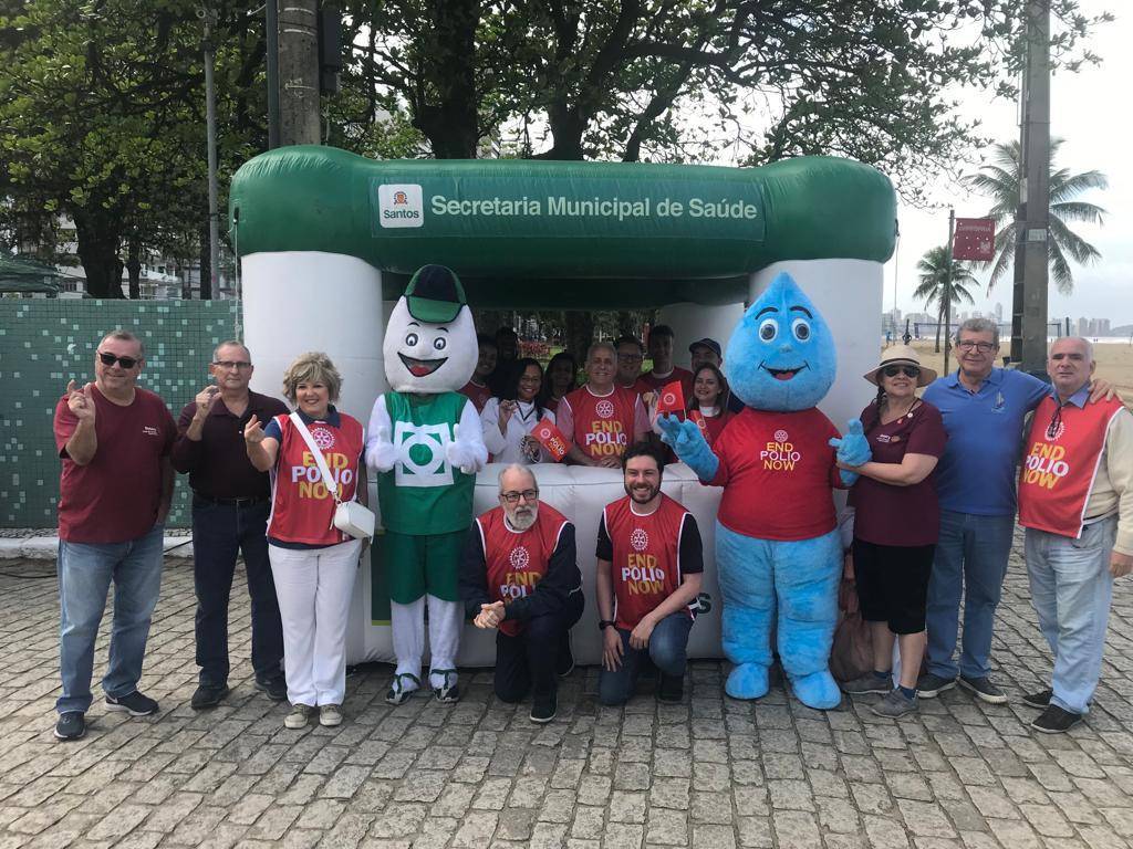 Em Campanha de Vacinação de Combate a Poliomelite, os associados do Rotary Club de Santos Aparecida participaram em conjunto com todos os Clubes das àreas litoral 01 e Litoral 02 na ação dia "D" no Posto Móvel instalado pela Prefeitura Municipal de Santos na praça das Bandeiras. A Ação teve a participação dos personagens Muretinha ( Prefeitura de Santos) e do Zé Rotinha ( RC Santos Aparecida) que alegraram e tiraram fotos com as crianças, papais e mamães. Foi utilizada Faixa alusiva ao combate a Polio na parada dos sinais de trânsito.