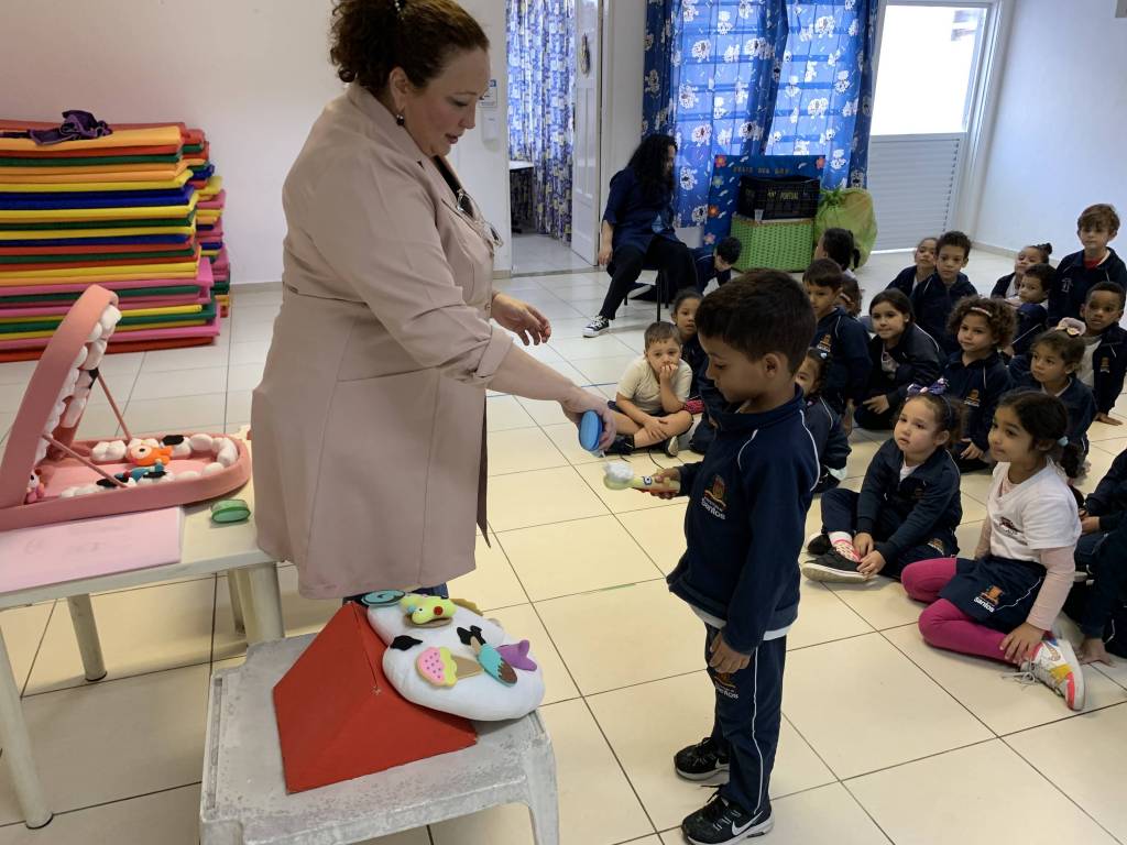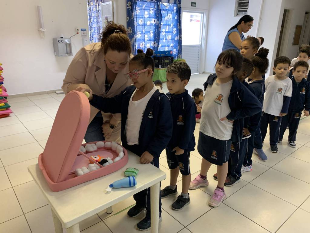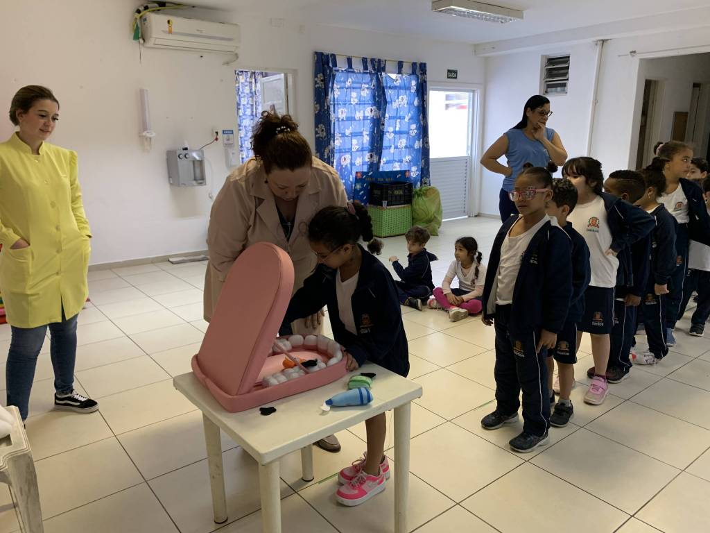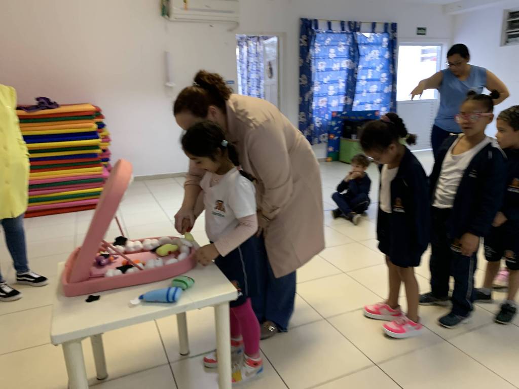 A Dra. Ana Paula Fassina, uma dentista excepcional, esteve presente para orientar nossas crianças de maneira carinhosa e atenciosa. Ela não apenas ensinou, mas também praticou e mostrou como prevenir as cáries, transmitindo conhecimento e promovendo a importância da saúde bucal.