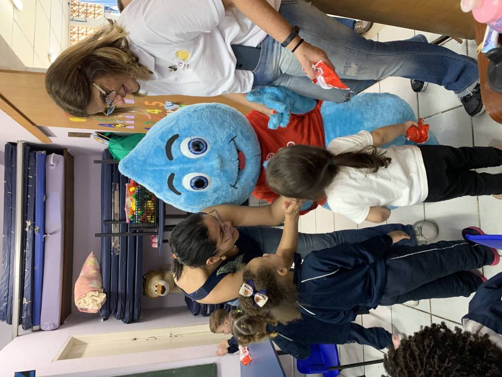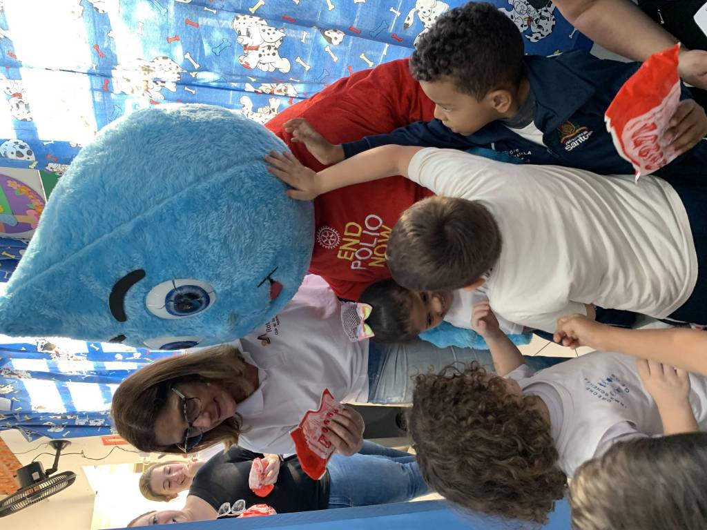 Não podemos deixar de mencionar a presença calorosa do nosso querido Zé Rotinha, que desempenhou um papel fundamental na entrega dos kits com escova e pasta de dente. Além disso, ele lembrou a todos da importância das vacinas para a saúde das crianças.