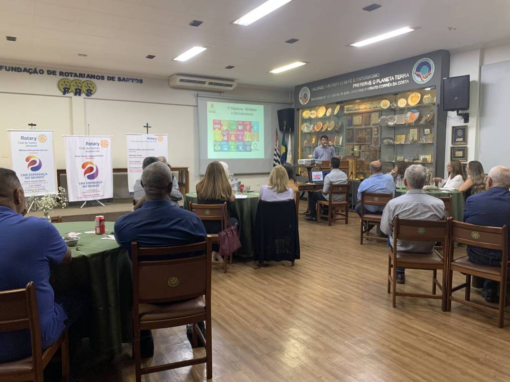 Tivemos a reunião conjunta dos Rotary Clubs de Santos Aparecida, Santos Ponta da Praia e Santos Noroeste. O destaque da noite foi a inspiradora palestra “Os ODS: 17 Objetivos para Mudar o Mundo”, ministrada com maestria por Fábio Tatsubô.