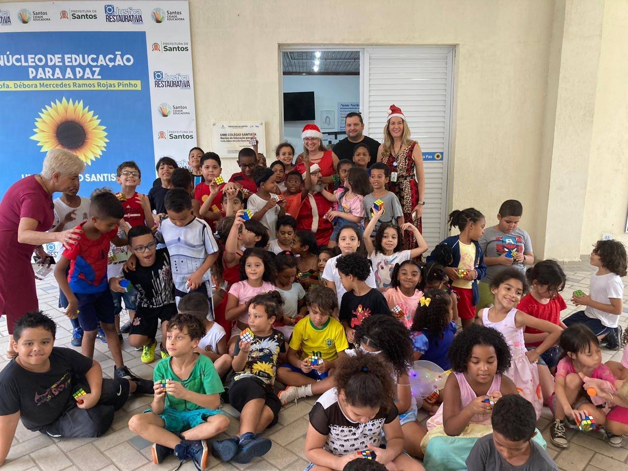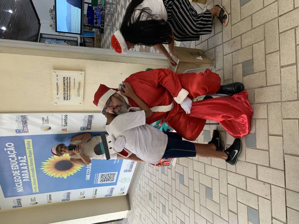 Uma tarde repleta de encanto e alegria na UME Colégio Santista com a visita do Papai Noel! Foi emocionante ver as crianças vivendo momentos mágicos, cheios de sorrisos e emoções. O Papai Noel trouxe consigo o espírito natalino, preenchendo nossos corações com felicidade e amor. Agradecemos a todos que fizeram parte desse momento especial. Que essa época continue a nos inspirar a espalhar alegria e afeto!