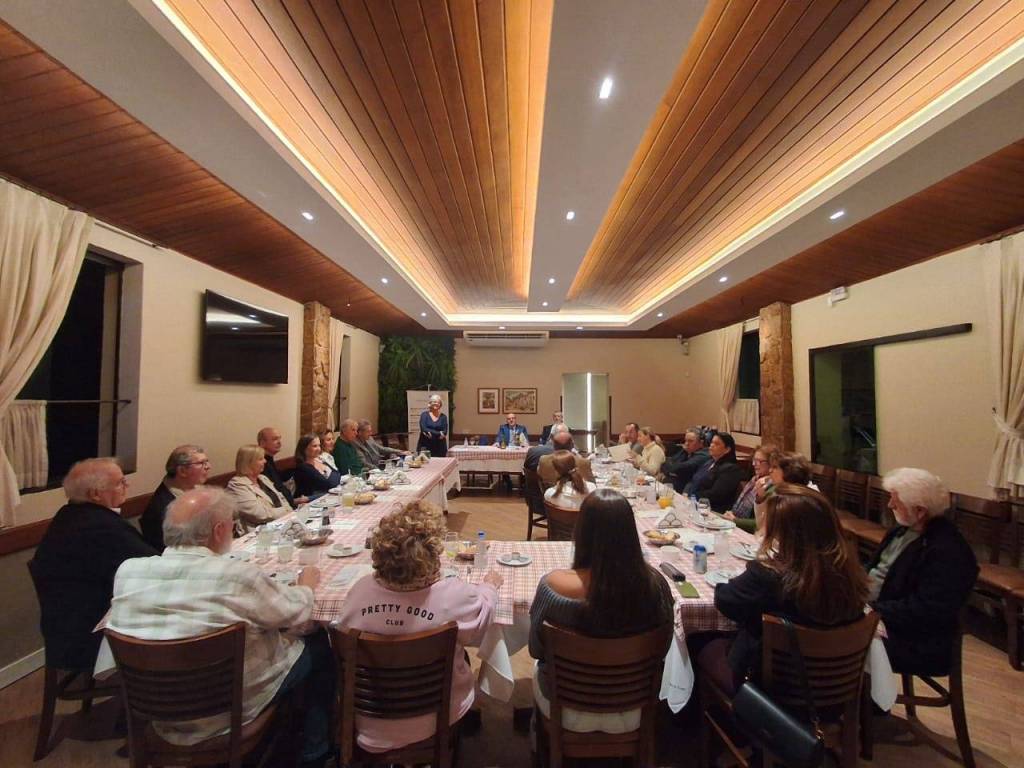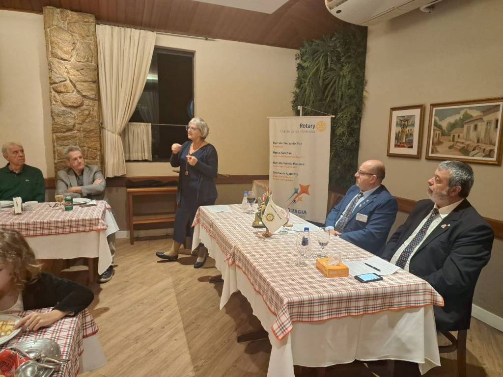 No Último dia 24 na Cantina Di Lucca os associados e convidados dos clubes de Rotary Santos Aparecida e Santos Ponta da Praia reuniram-se em reunião conjunta com palestra da Pedagoga, mestrada em Educação e Conselheira do conselho municipal do idoso de Santos “Eliza Montrezol” que ministrou a palestra “ A Arte de Envelhecer”.