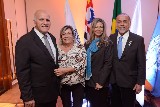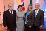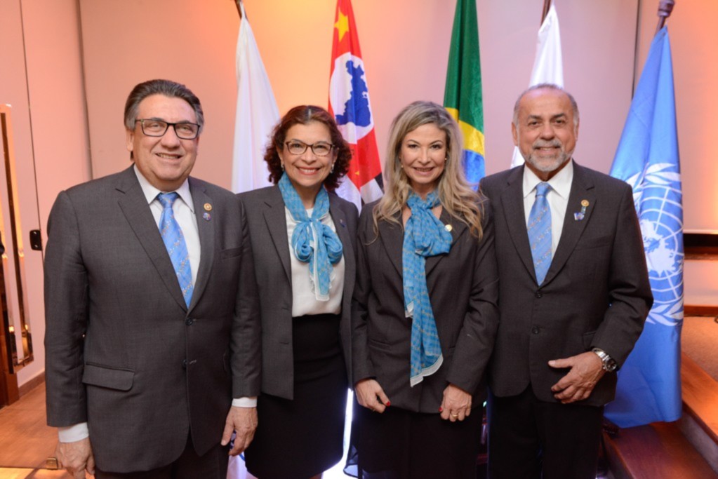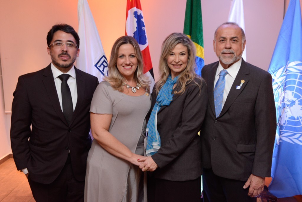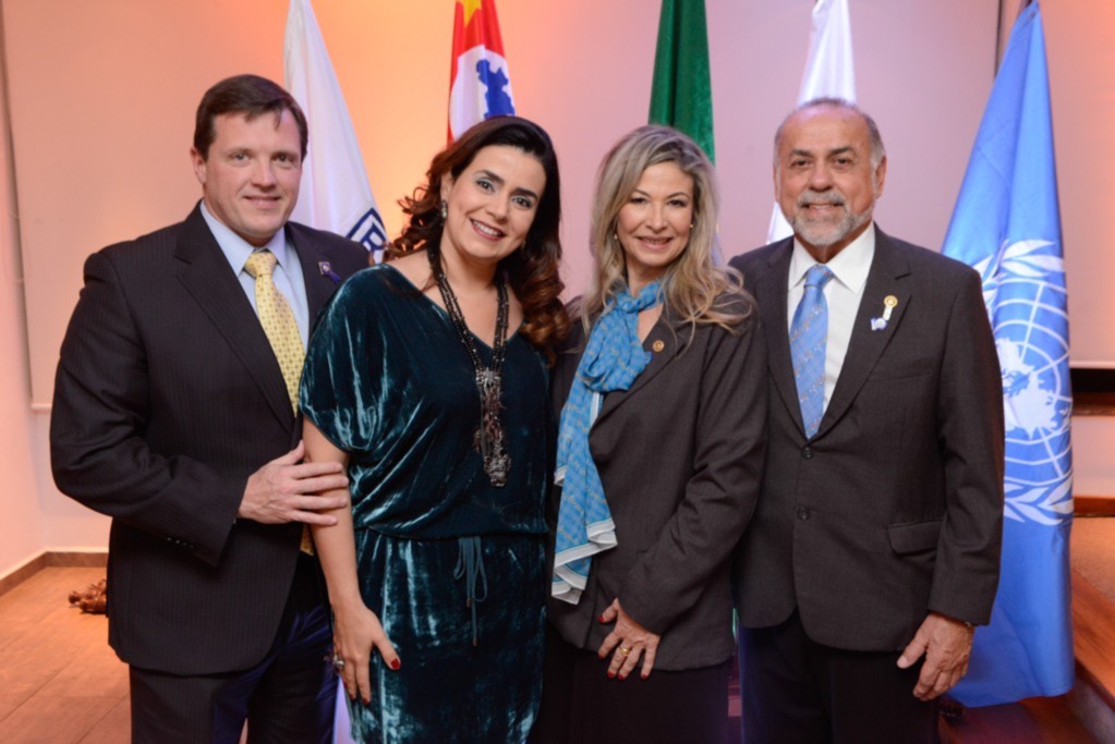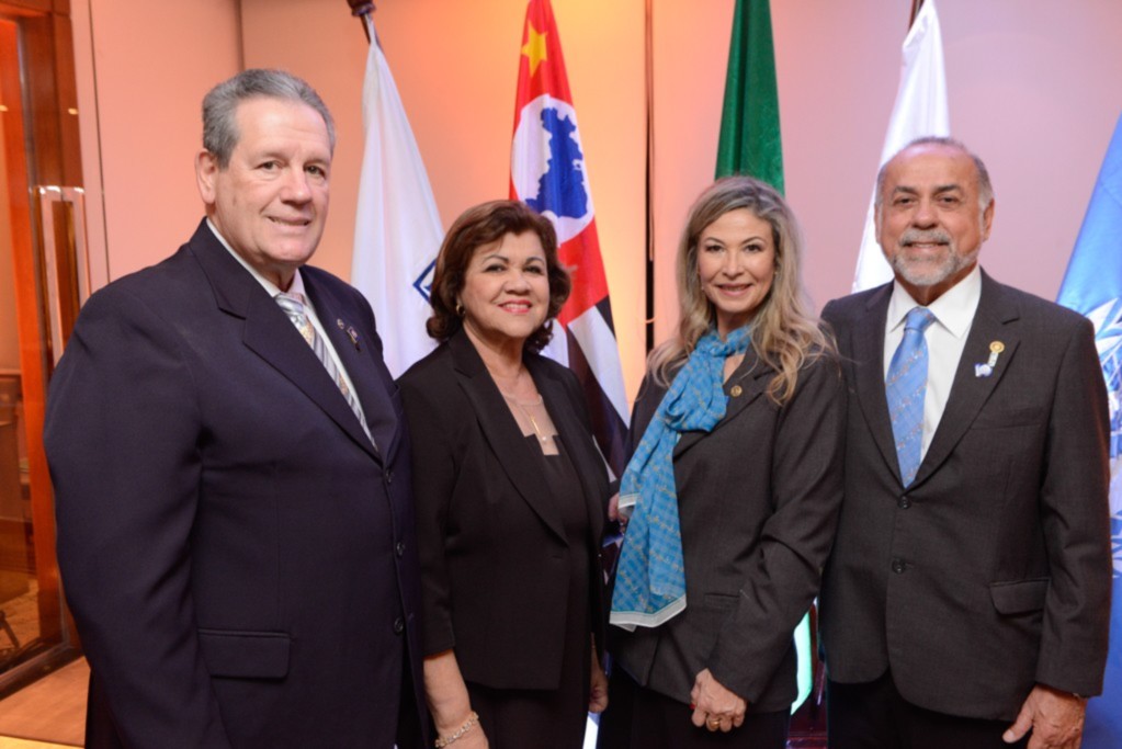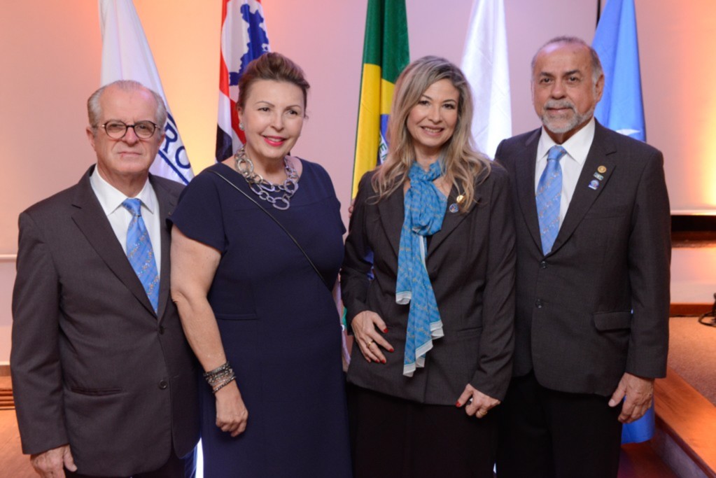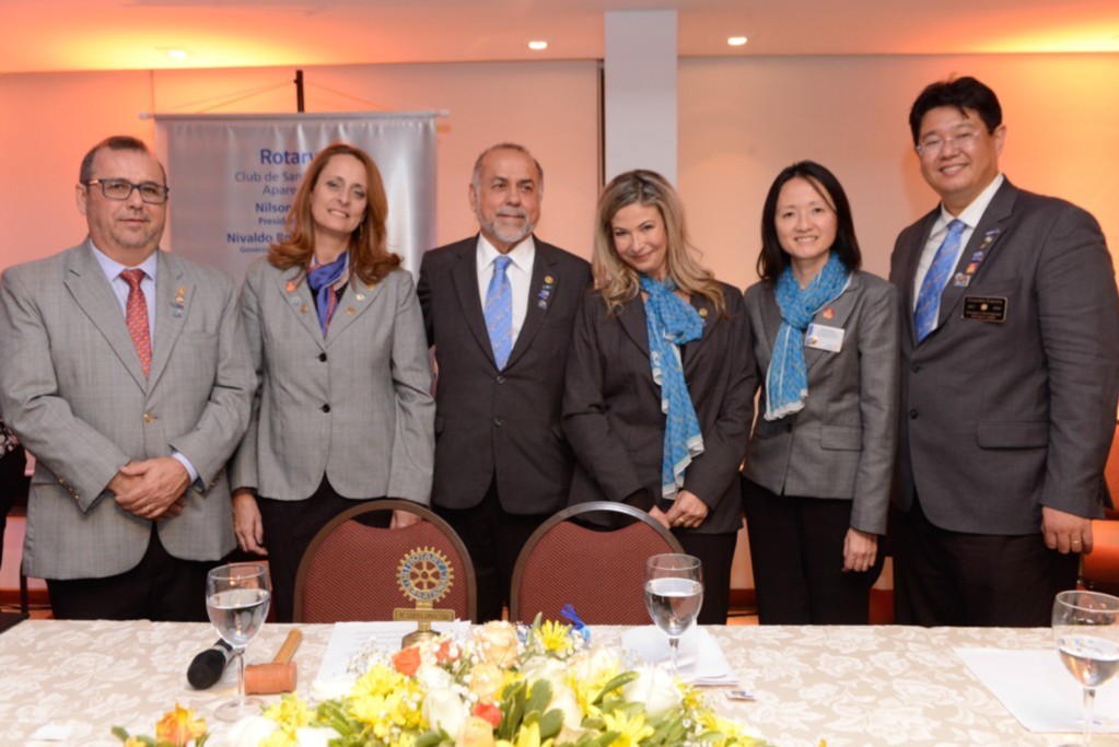 Os governadores Marcos Anselmo Ferreira Franco (2010-2011); Roberto Luiz Barroso (2009-2010); Sérgio Lazzarini (2008-2009), acompanhado pela cônjuge, Anabela Lazzarini; Carlos Torci (governador eleito para 2018-2019), acompanhado pela cônjuge Sonia Mara; e Adriano Valente (governador eleito para 2019-2010), acompanhado pela cônjuge, Alice Valente.
