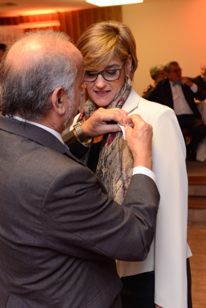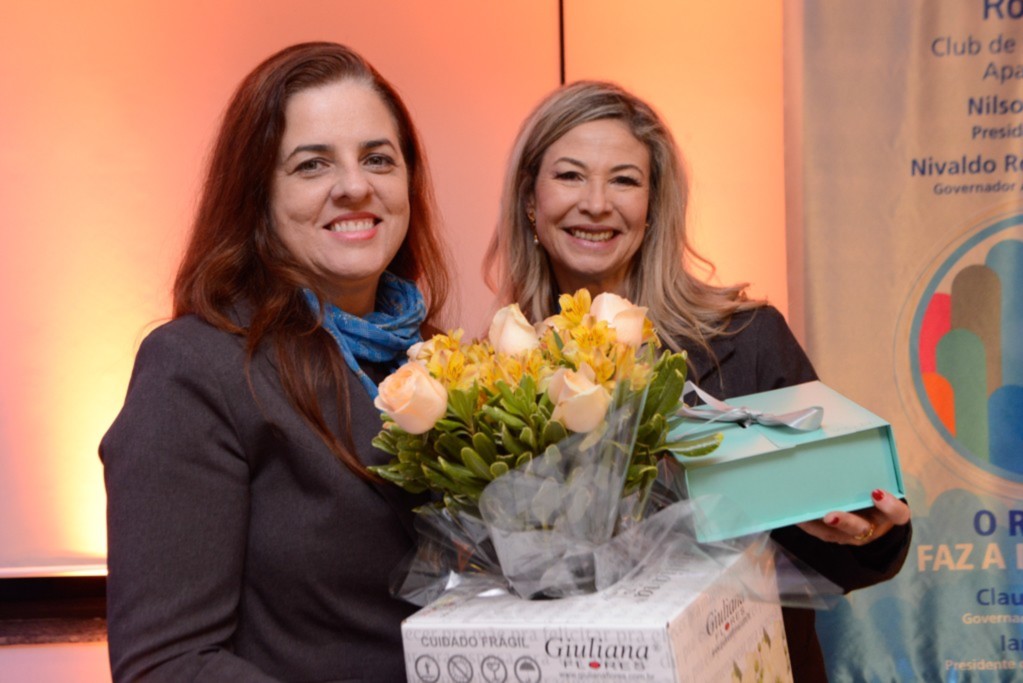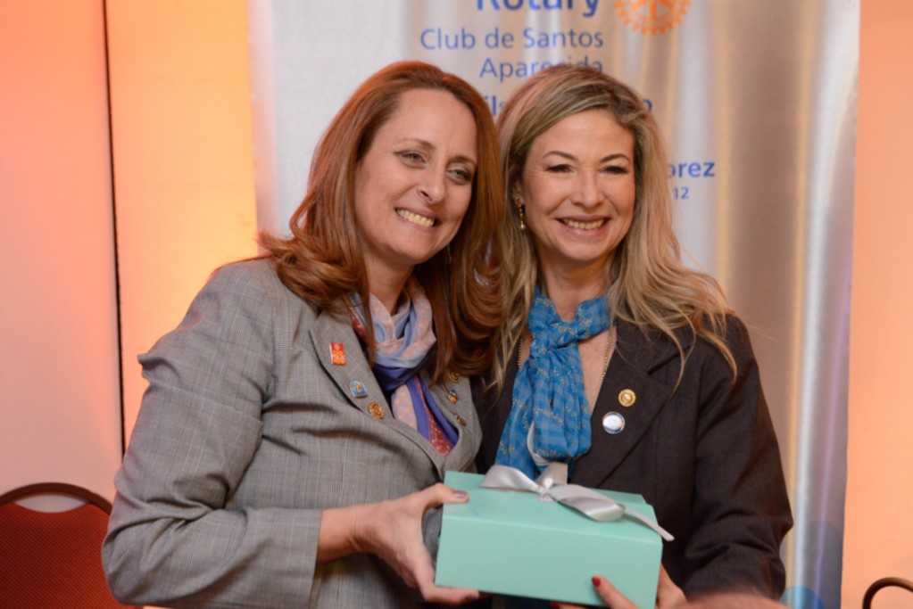 Outro momento de destaque da noite e que empolgou os presentes foi a entrega feita por César do título Paul Harris Safira para sua mulher, Silvia Cuculo Abdul-Hak Antelo, pela atuação ativa no Rotary Santos Aparecida desde a fundação do clube, há sete anos.