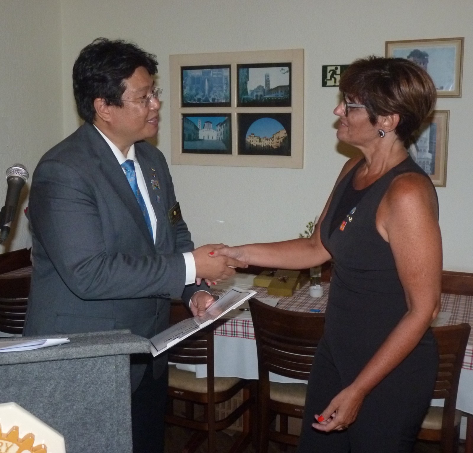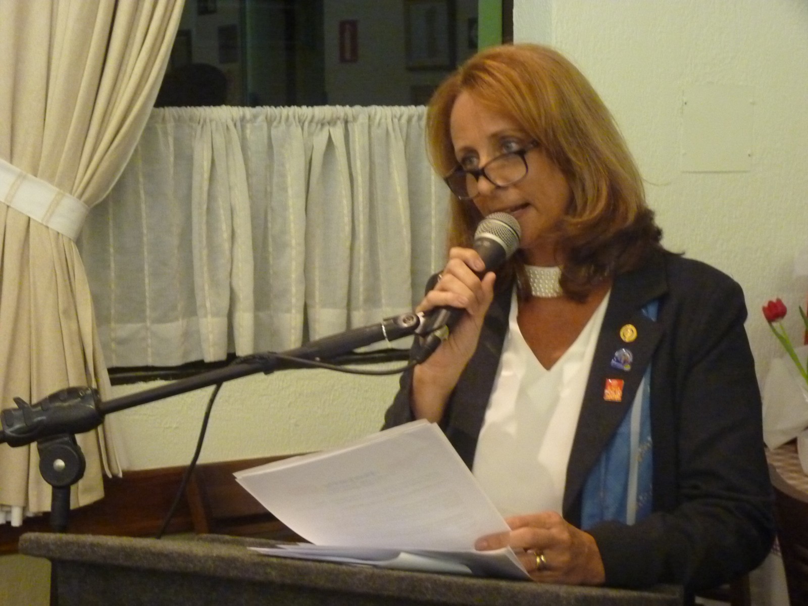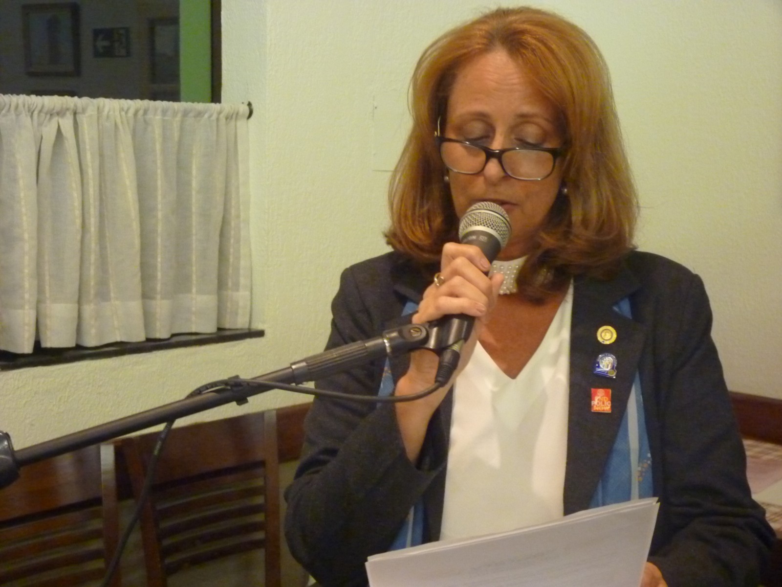 Silvia Cuculo fez um breve discurso e agradeceu à presença de todos, falou sobre suas metas, projetos permanentes do clube e pediu aos associados que continuem a colaborar com este novo Conselho Diretor. Ser voluntário é um admirável dom de pessoas humanitárias, declara.