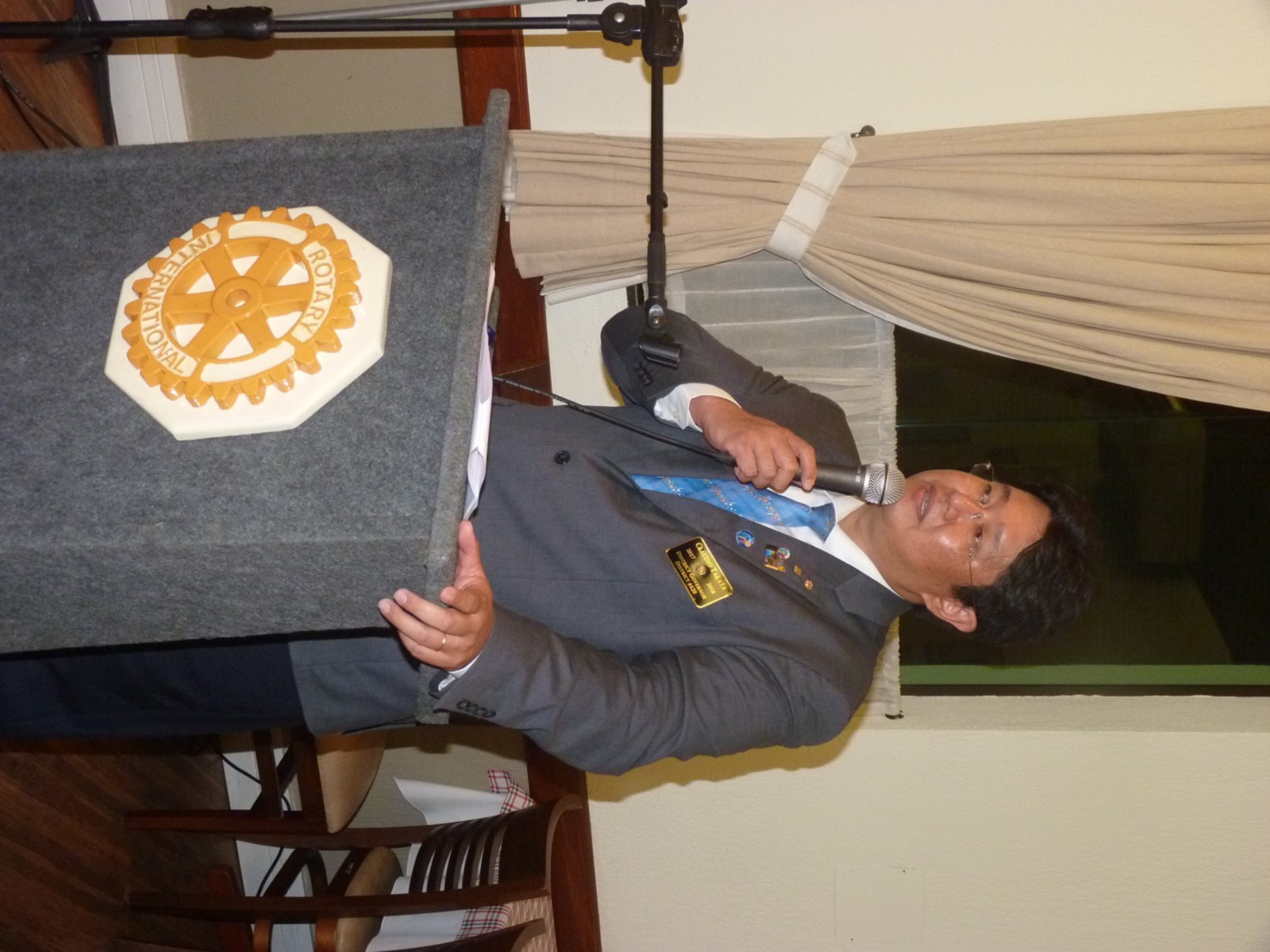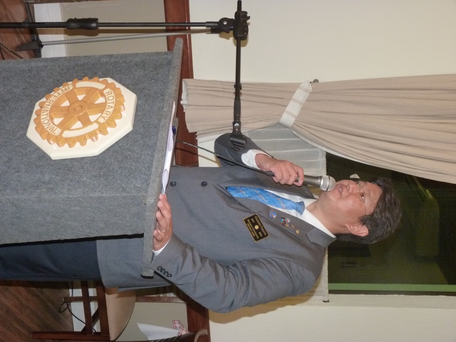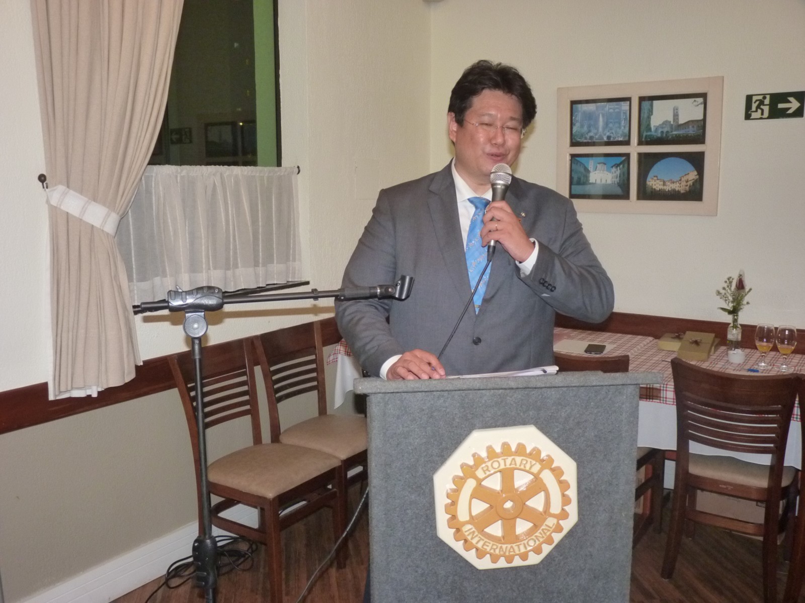 Em seu discurso, Claudio Takata reforçou sobre a continuidade dos trabalhos do Rotary International citando alguns valores sobre companheirismo, comprometimento, integridade, diversidade e liderança. Ele parabenizou o clube e agradeceu à noite agradável que passou junto aos associados. Esse é um clube alegre, de pessoas felizes por estarem juntas e fazer o bem ao próximo, encerra.