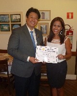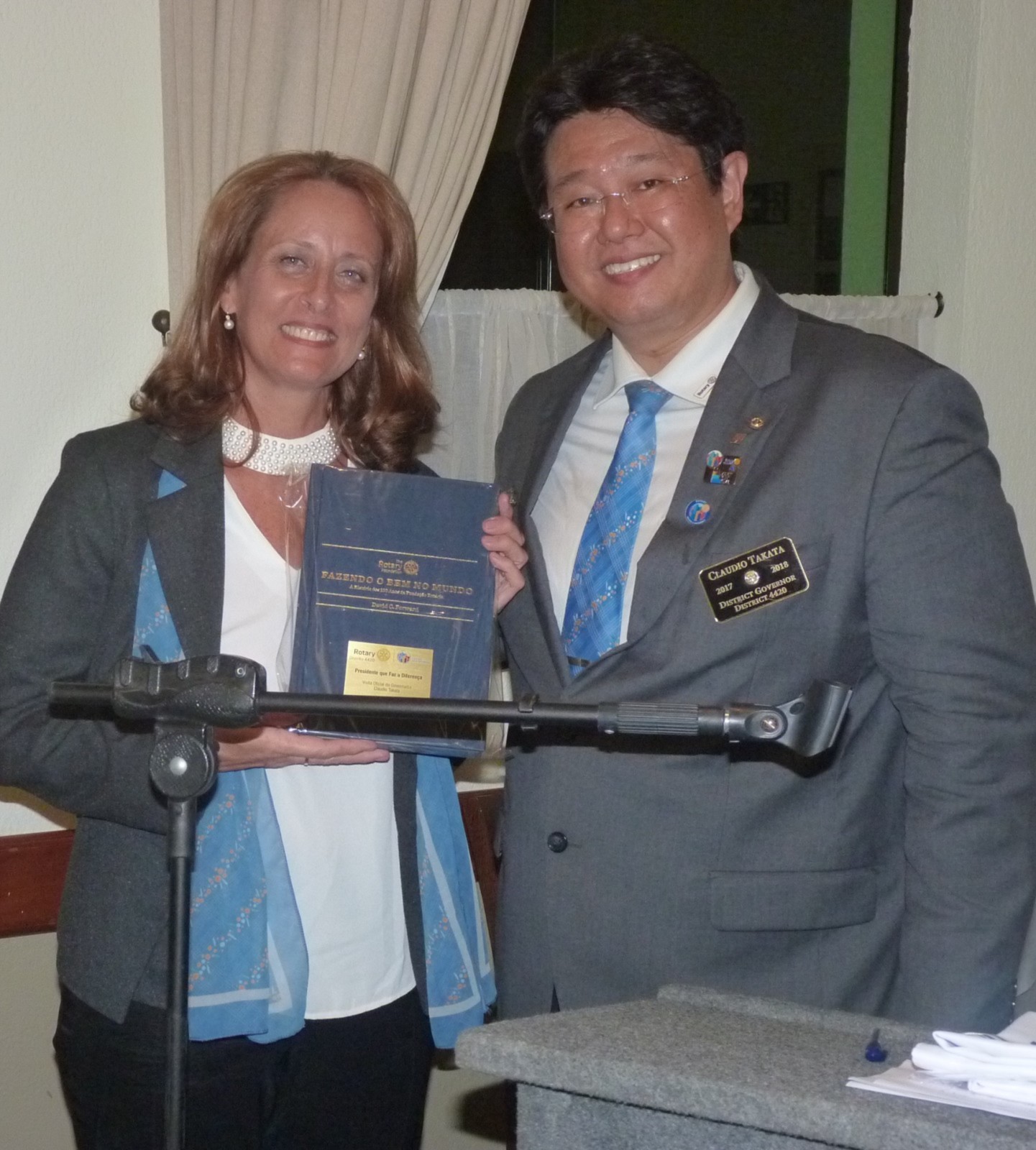 Adriana Ramires Lopo Ferraz foi homenageada na área educação. A professora recebeu das mãos do governador do Distrito 4420, um diploma de Honra ao Mérito em forma de reconhecimento e agradecimento por ser a educadora do ano.