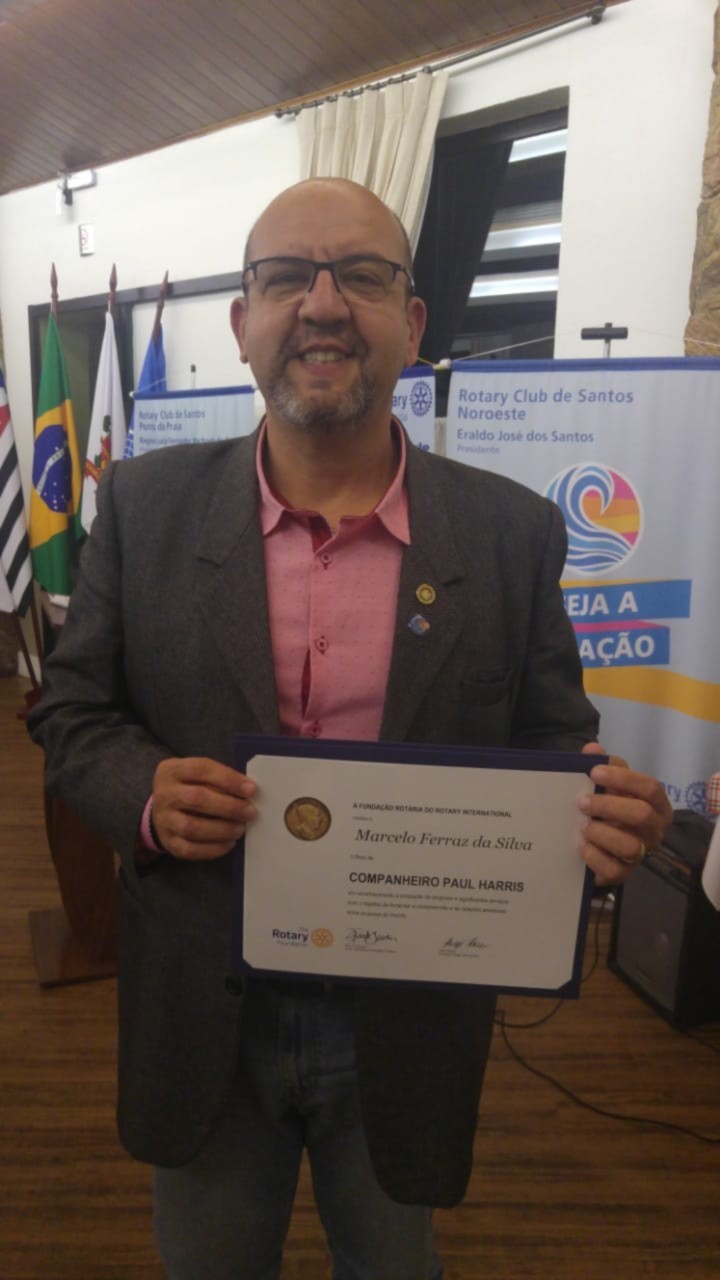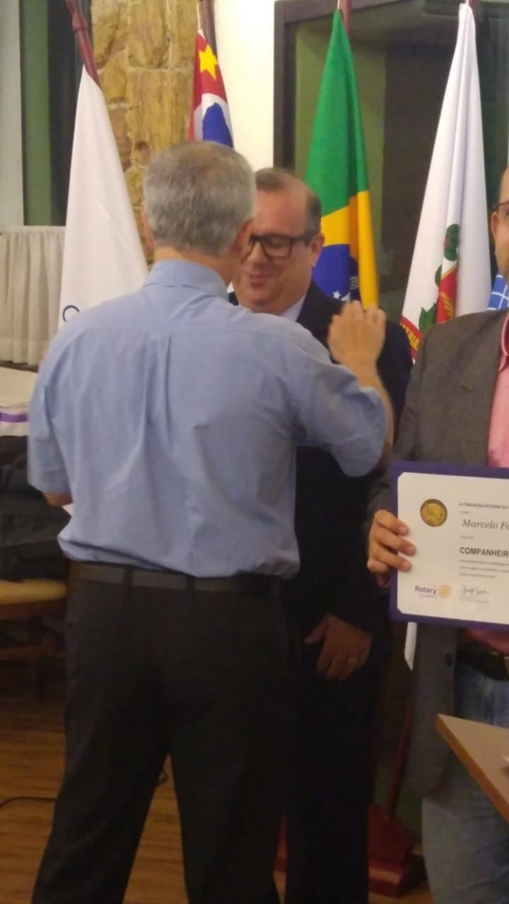 Em noite repleta de significado, o Rotary Club de Santos Aparecida, outorgou Titulo Paul Harris ao Presidente Eleito 2019/2020 Marcelo Ferraz e o Titulo Paul Harris 2 safiras ao Companheiro César Antelo que fora entregue aos companheiros pelo Presidente da Comissão Distrital da Fundação Rotária Marcos Anselmo Franco.