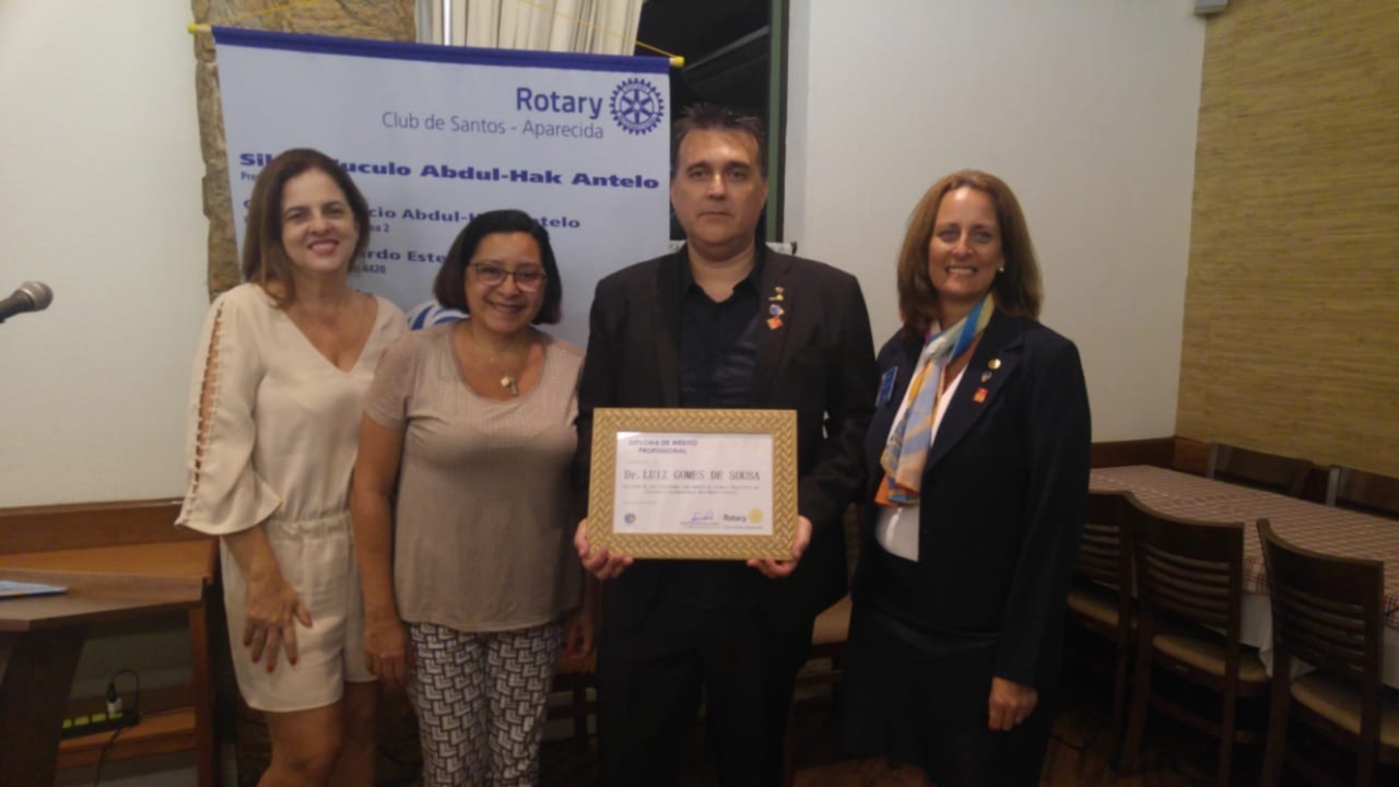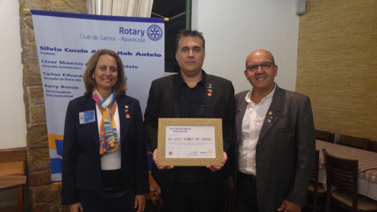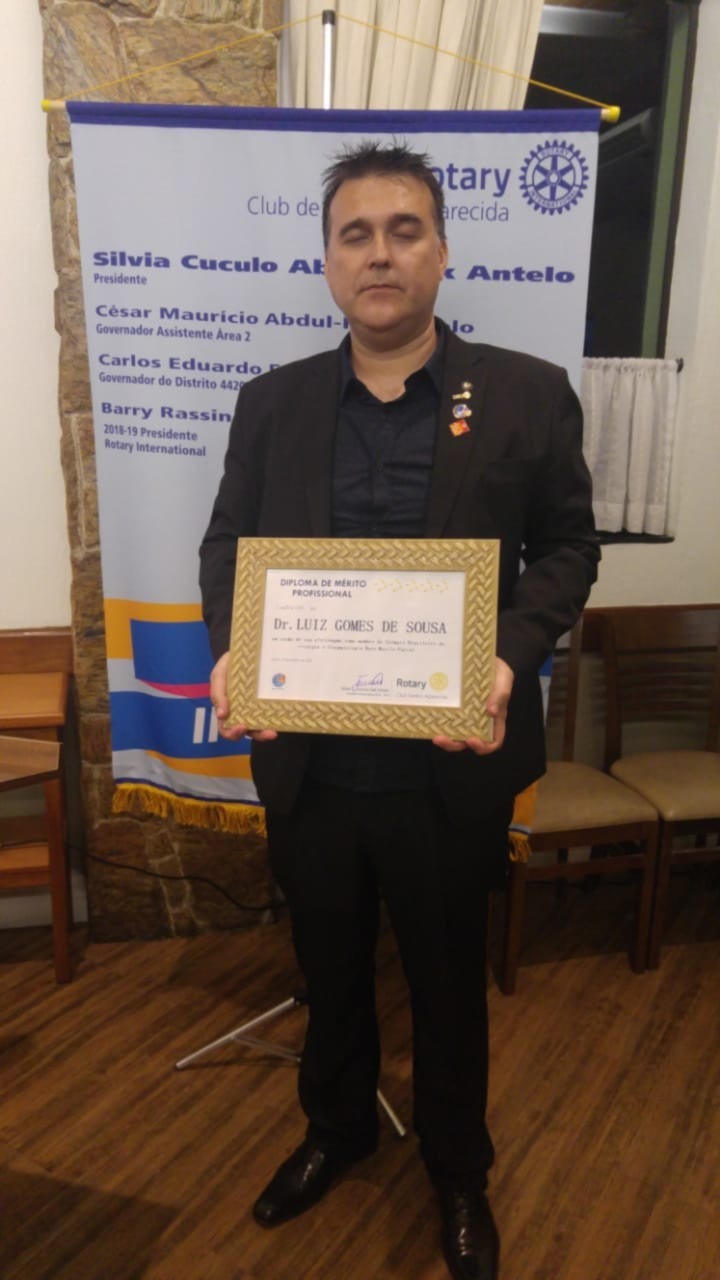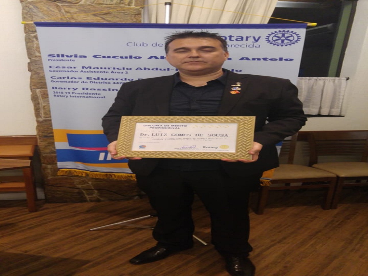 O Rotary Club de Santos Aparecida entregou diploma de Mérito Profissional ao Companheiro Luiz Gomes de Sousa em reconhecimento aos seus relevantes serviços profissionais no Ano de 2018 ao qual se tornou membro da Academia Brasileira de Cirurgia Maxilo Buco Facial.