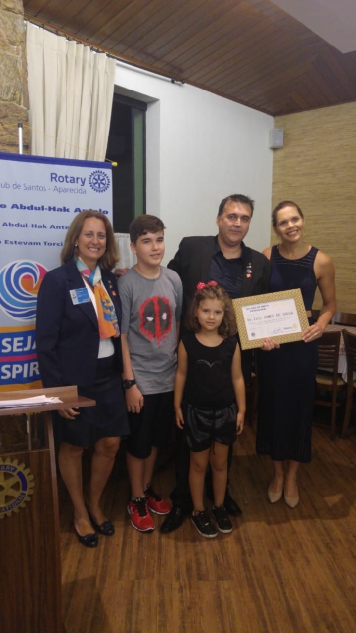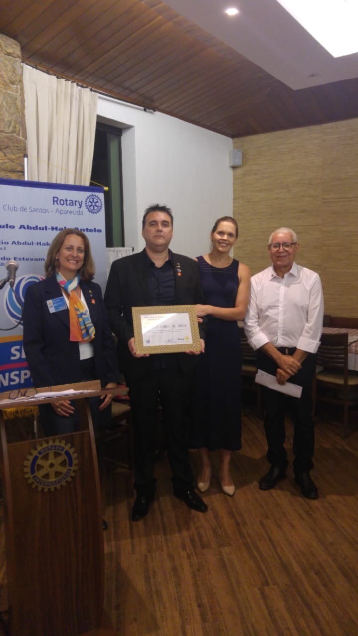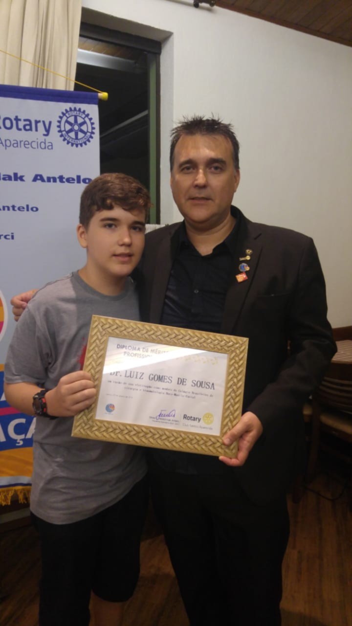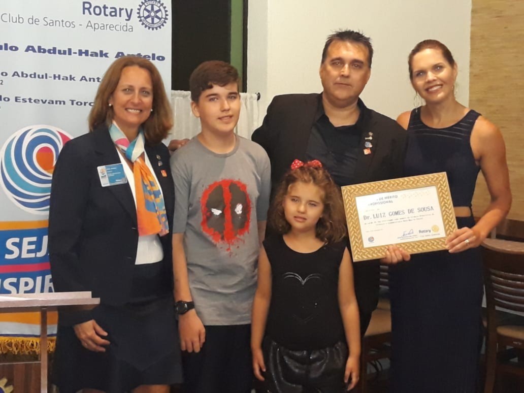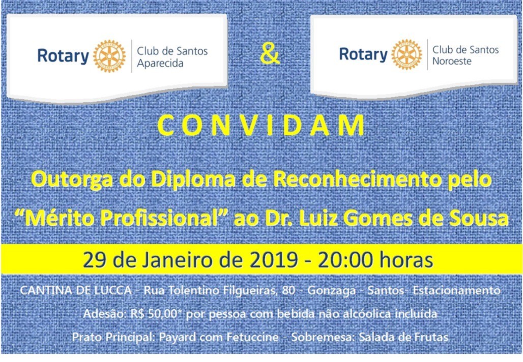 O Rotary Club de Santos Aparecida entregou diploma de Mérito Profissional ao Companheiro Luiz Gomes de Sousa em reconhecimento aos seus relevantes serviços profissionais no Ano de 2018 ao qual se tornou membro da Academia Brasileira de Cirurgia Maxilo Buco Facial.