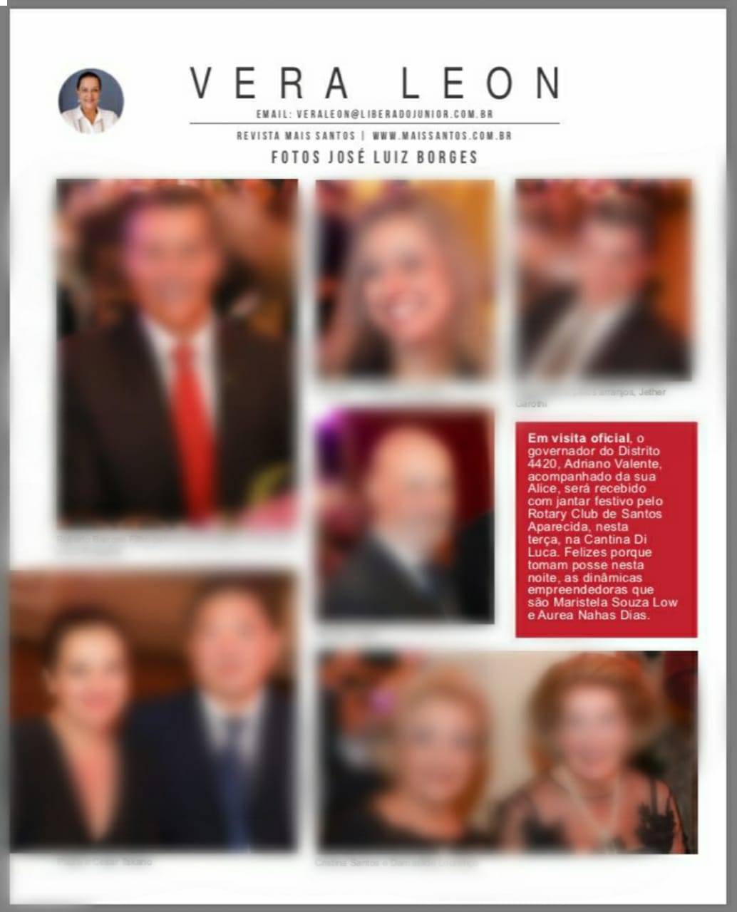Rotary Club de Santos Aparecida sendo destaque pela jornalista Vera Leon na coluna da Revista Mais Santos.