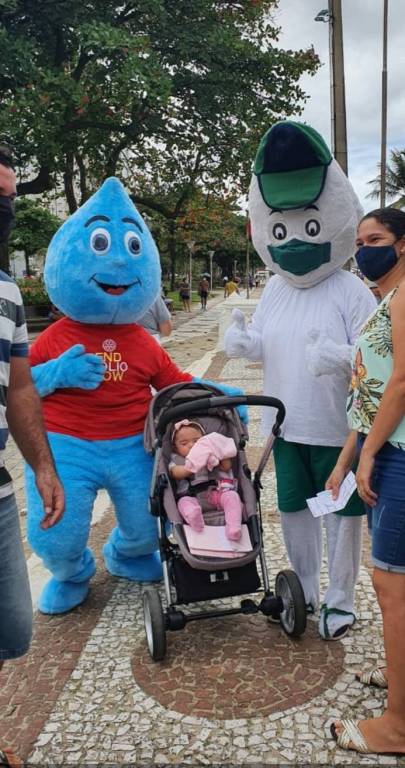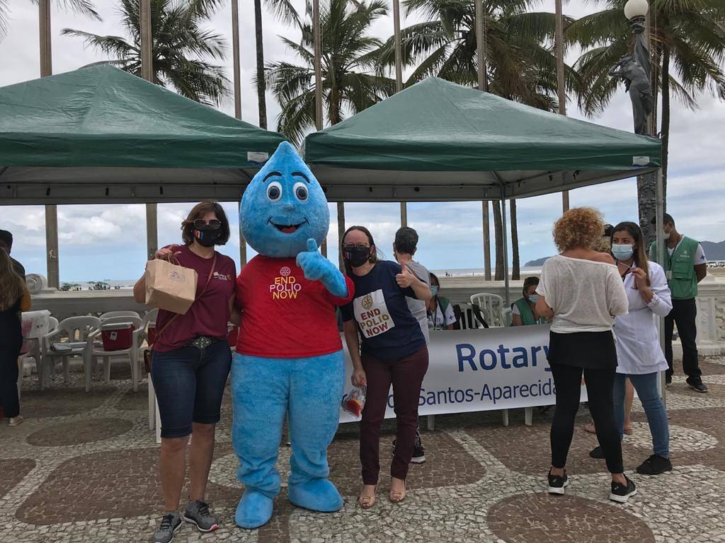 Em apoio a Secretária de Saúde de Santos na Campanha de Multivacinação tendo seu dia " D" em 17/10/2020 no posto volante da Praça das Bandeiras, o Rotary Club de Santos Aparecida e Santos Noroeste participaram e divulgaram com muita animação do Personagem Zé Rotinha ( Santos Aparecida) a vacinação contra Poliomelite.